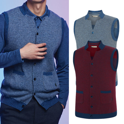 남자 간절기 오버핏 배색 브이넥 니트조끼 AC-VES-Q014-소라