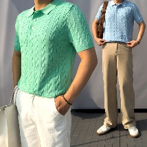 초냉감 꽈배기 카라 반팔 니트 무료배송