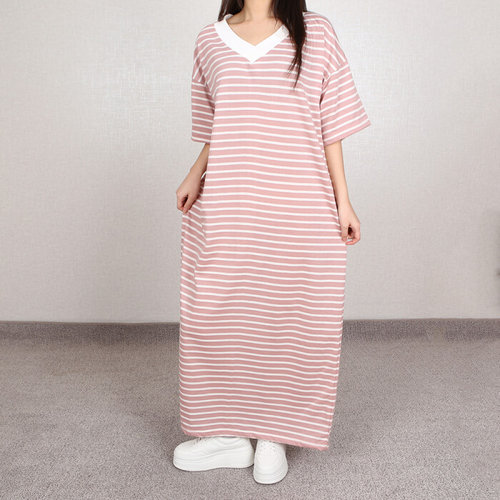 파라노말샵 / (원마일룩) 단가라 브이넥 오버핏 반팔 롱 원피스 (파