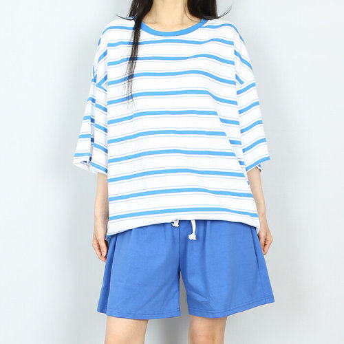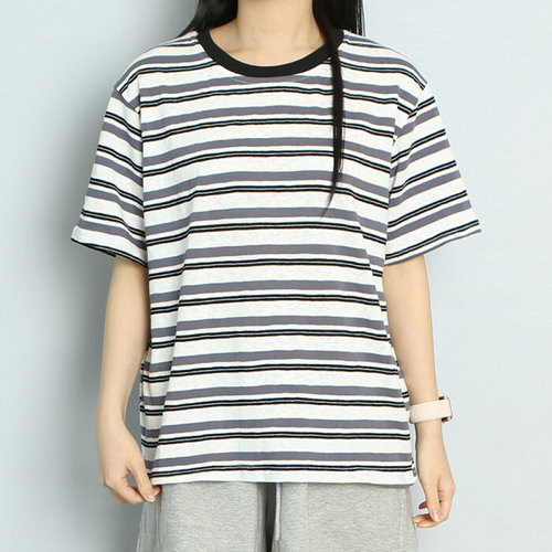 파라노말샵 / (박스티) 스트라이프 라운드 배색 오버핏 반팔 티셔츠