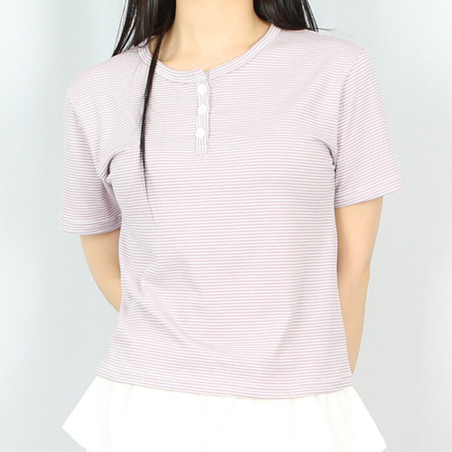 파라노말샵 / 4색 버튼 잔 단가라 라운드 반팔 티셔츠 (파라노말샵)