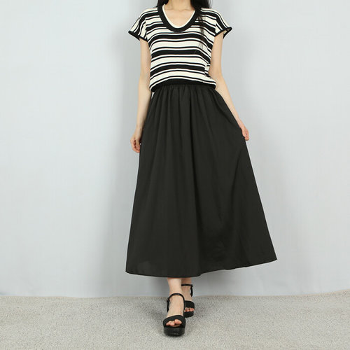 파라노말샵 / 무지 단가라 투톤 니트 A라인 반팔 롱 원피스 (파라노