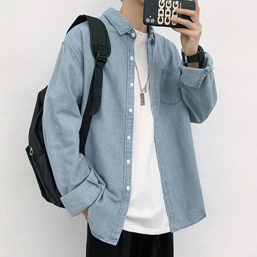 남자캐주얼셔츠 캐주얼 청남방 여자 데이트룩 데님셔츠 커플 남자 WFJHMYK