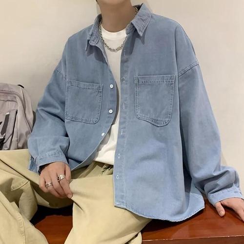 스타일닥터 남성 데님셔츠 오버핏 워싱 청남방 투포켓 긴팔 루즈핏 자켓 캐주얼 데님 코트