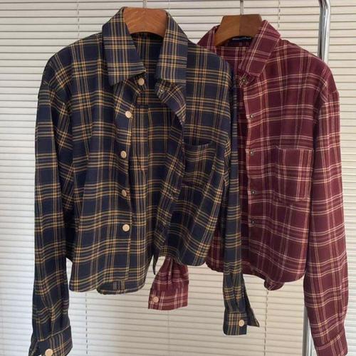 오버핏 크롭 체크셔츠 체크 남방 레이어드 셔츠 WFLX6FI