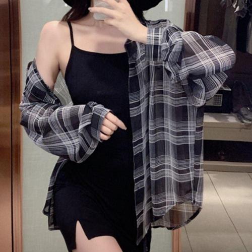 시스루 오버핏 셔츠 체크 레이어드 남방 WFLX6FN