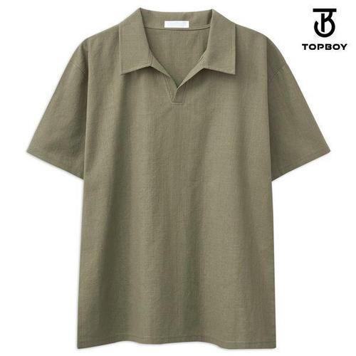[탑보이]린넨라이크 오픈카라 반팔 티셔츠 (GY016)