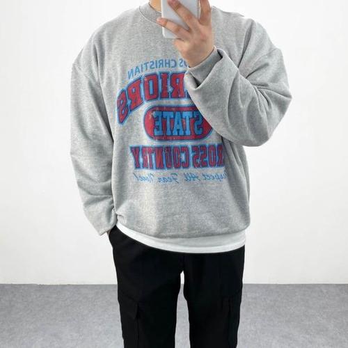[엠클로]남자 오버핏 쭈리 코튼 오피셜 레터링 프린팅 맨투맨티셔츠 5컬러