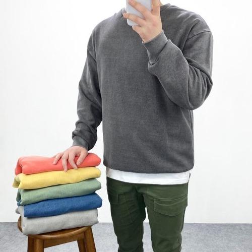[엠클로]오버핏 후염 피그먼트 3단쭈리 맨투맨티셔츠 남여공용 6컬러