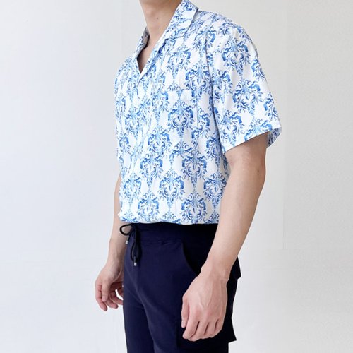 남자 에스닉 비치 반팔남방 셔츠 DJ2-SHH-SGSSSH222-화이트블루