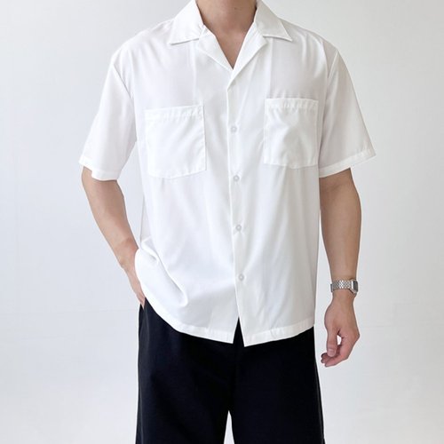 남자 오버핏 파스텔 카라넥 면 반팔 셔츠 RB-SHH-Q025-화이트