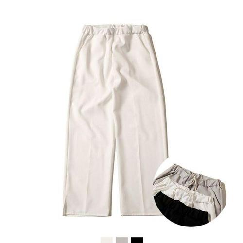 [에이치플러스몰]밴딩슬랙스 밑단 스타일 절개 슬림 면 바지 허리밴딩