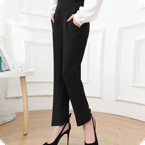 밴딩슬랙스 밑단 스타일 절개 슬림 면 바지 허리밴딩 WD394B1