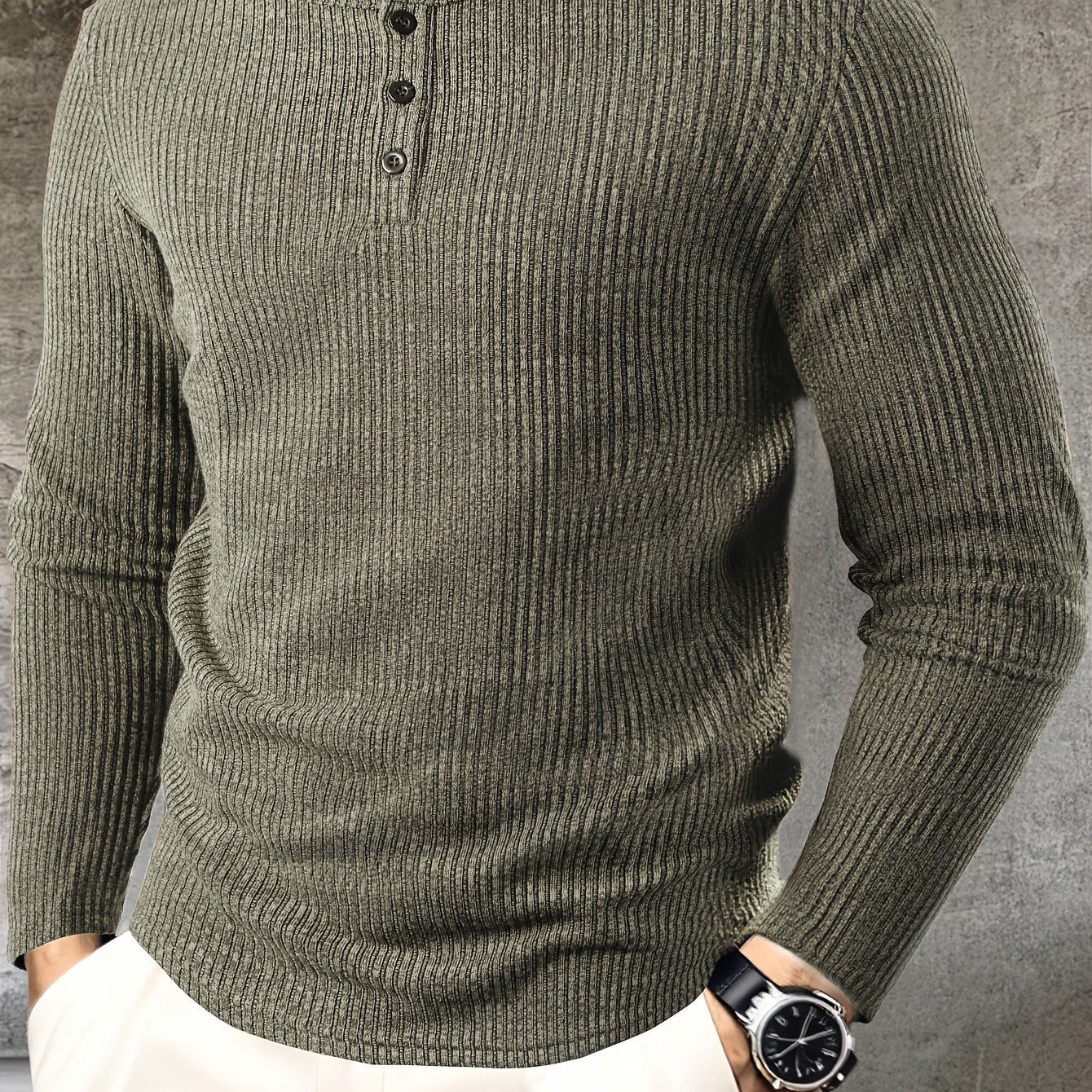 TEMU 남성용 긴팔 헨리 셔츠, 버튼 니트가 있는 편안하고 세련된 디자인을 특징으로 캐주얼 아웃도어 웨어에 적합합니다.|남자셔츠