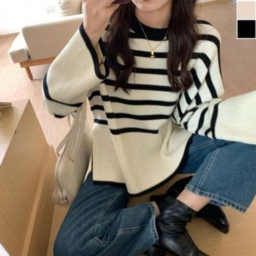 [셀럽하우스]시보리 NKWO0728 단가라 캐주얼 니트 1P 필수템 긴팔 옆트임 포