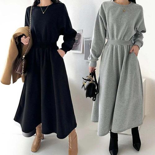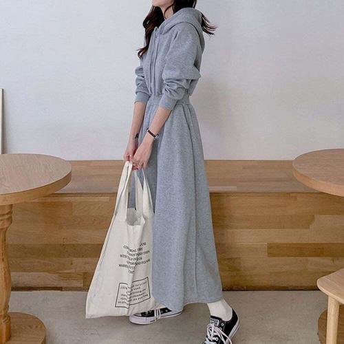 [셀럽하우스]시보리 PZYB2147 허리밴딩 긴팔 후드 캐주얼 롱 플레어 원피스