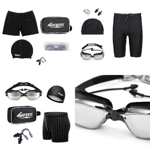 남성 실내수영장 수영복 4종세트(수경+수모+가방) 남자 아레나 비치웨어 래쉬가드 반바지 보드숏 빅사이즈