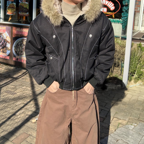 [피팅남]남자 우래 오버핏 겨울 누빔안감 후드 숏 야상 패딩