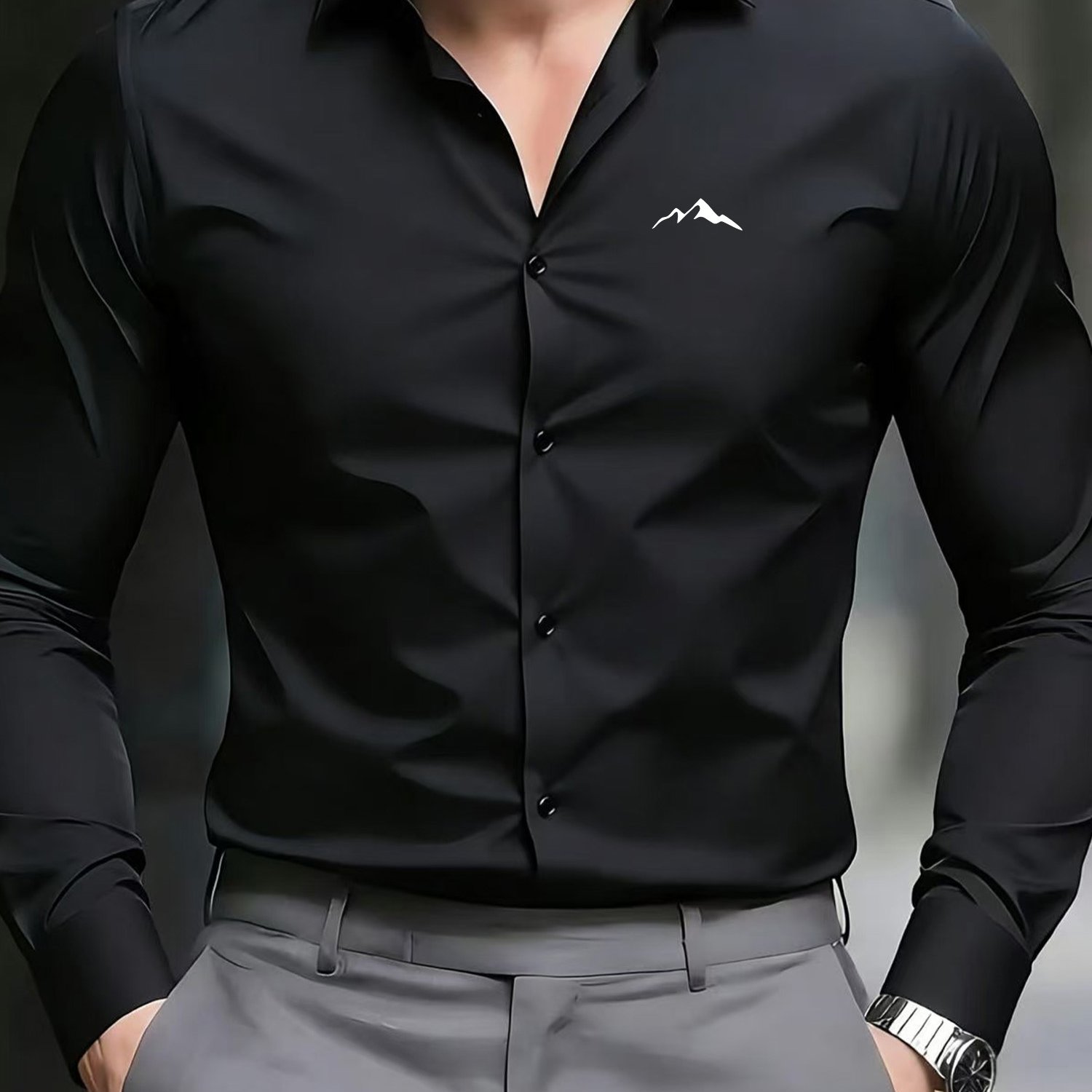 TEMU 남성용 업무용 다림질 필요 없는 긴팔 셔츠, 설산 프린트, 슬림핏 전문가용 정장, 면접 및 출퇴근용 활용도 높은 단색 셔츠