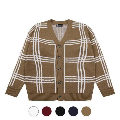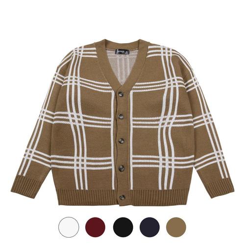 [파파브로]남성 오버핏 사각체크 브이넥 니트 가디건 SO-CA-Q072