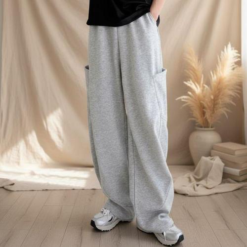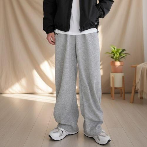[옷자락]남성 사계절 와이드 허리밴드 일자 트레이닝팬츠