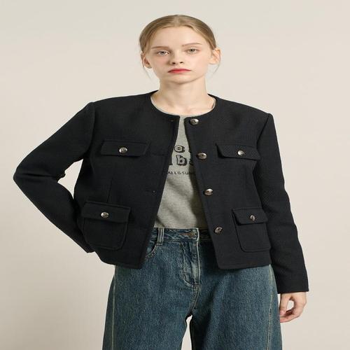 [르샵]노카라 페이크 포켓 크롭 트위드 자켓 (DO1JK057A)