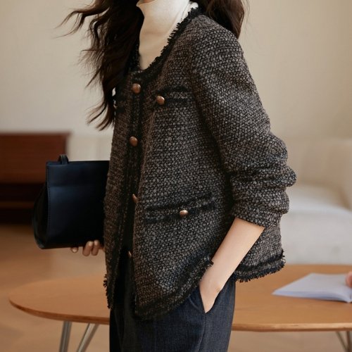 울 혼방 투톤 조직 트위드 재킷 - 브라운 (RY4911P51D)