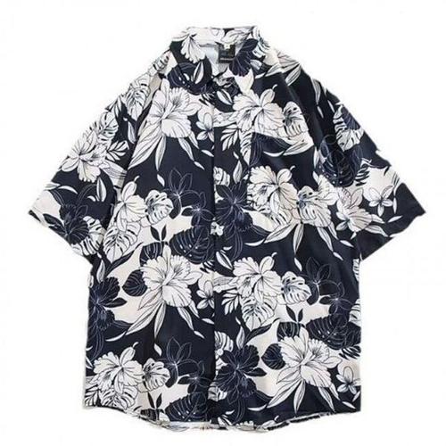 하와이안 보태니컬 플라워 프린트 남녀공용, 반팔 라펠, 해변 단추 다운 셔츠, 캐주얼 패션 셔츠