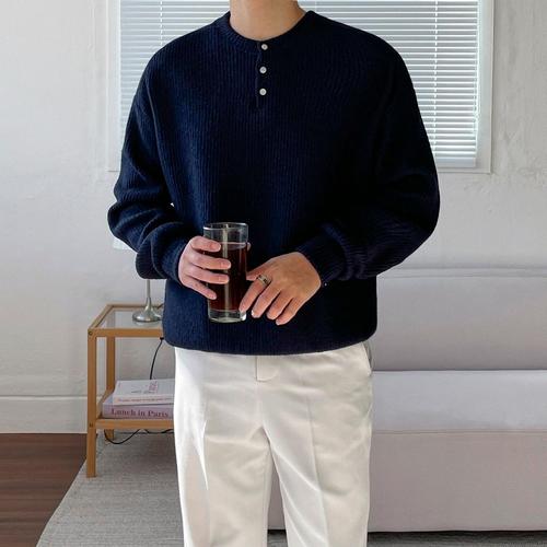 남자 단추 반오픈 헨리넥 모크넥 니트 폴라 OMWT-4535