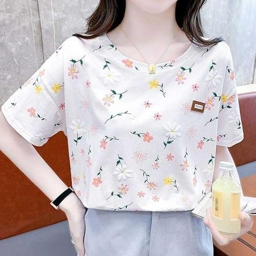 [오노마] ONM 플라워 반팔티 여름 입체 화이트 핑크 라운드넥 티