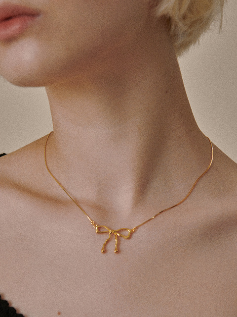 [오브이티유] [925 Silver] Flow Ribbon Necklace - Gold