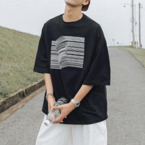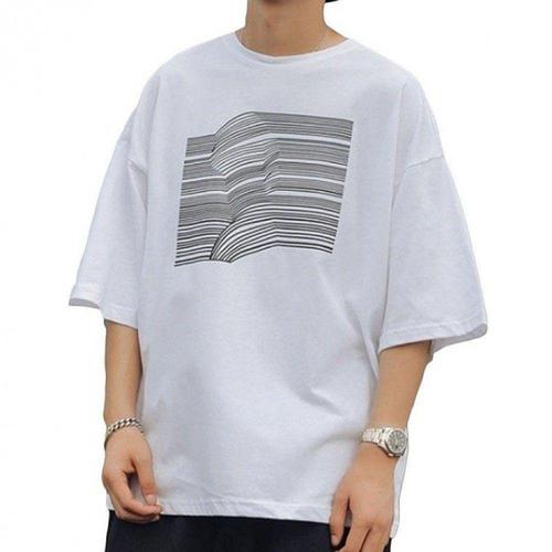 남성용 여름용 오버핏 캐주얼 티셔츠 5부 반팔 상의 WFLLYUO
