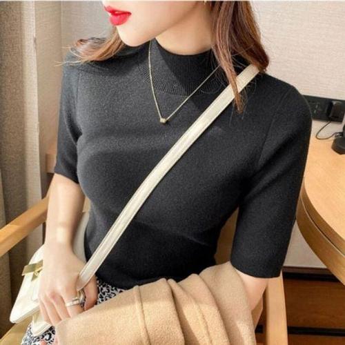 [에이치플러스몰]반폴라 반팔 니트 5부소매 무지 팔뚝살 커버 이너가능