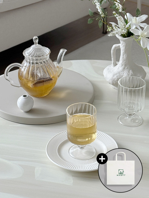 [니코트] [내열유리] 니코트 플리츠 티팟+유리컵 고블렛 선물세트