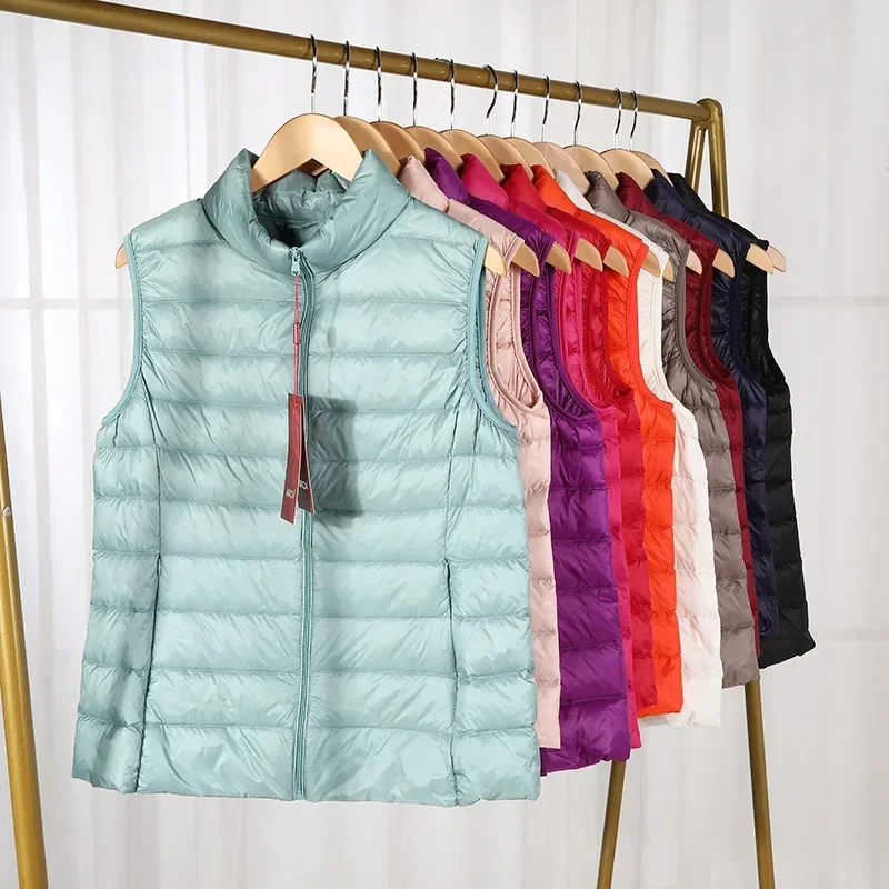 여성용 초경량 90% 화이트 덕 다운 조끼, 따뜻한 겨울 슬림 조끼, 파카 아래 여성 라이너, 휴대용 아웃웨어, 용수철 가을