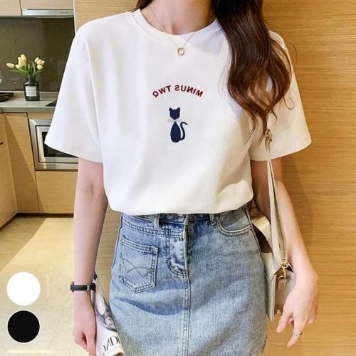 [셀러허브_여성트랜드패션]여성 티셔츠 반팔 라운드넥 ERK-312 냥이