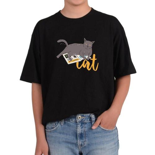 고양이 프린팅 빅사이즈 롱반팔티 박스 티셔츠 T-005