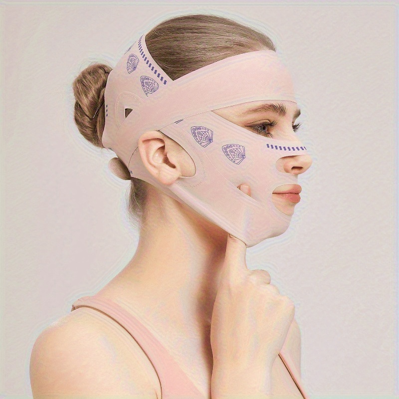 TEMU 여성용 리유저블 V라인 페이스 마스크 - 이중 턱 감소 및 목 리프트, 메이크업 후 부드러운 디자인의 저알러지 뷰티 기기, 블랙 테크놀로지 라이트, 사계절 사용 가능