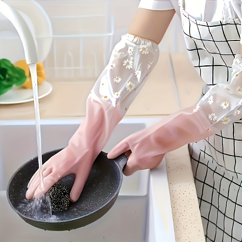 TEMU 4계절용 PVC 긴팔 청소장갑 1켤레, 방수 주방 설거지 장갑, 미끄럼방지 가정용 장갑, 내구성 세탁장갑, 청소 용품 및 도구