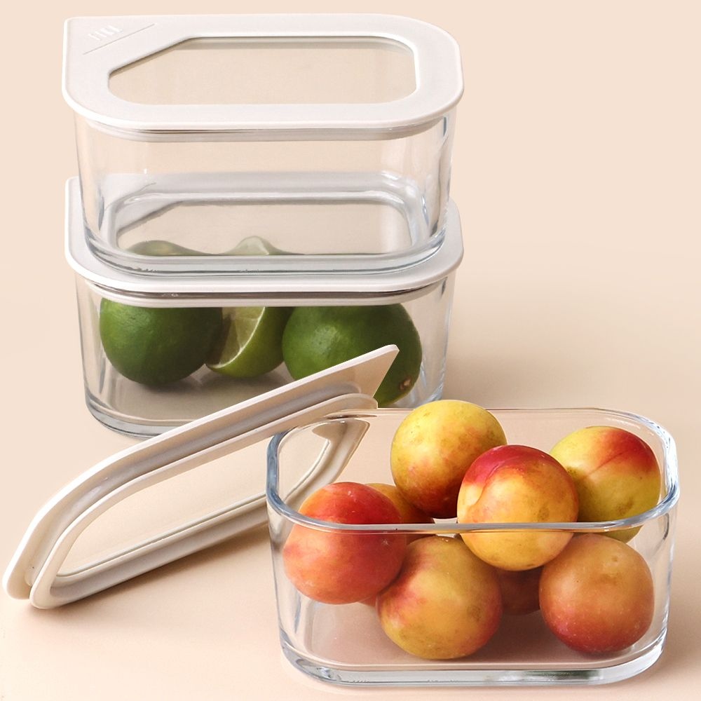 피카글라스 유리 직사각 반찬통 밀폐용기세트 3P 530ml