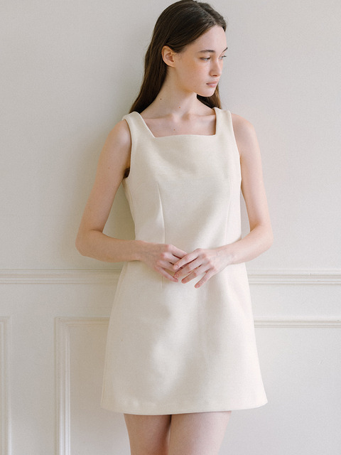[라미네즈] 벨벳 미니 드레스 - 크림