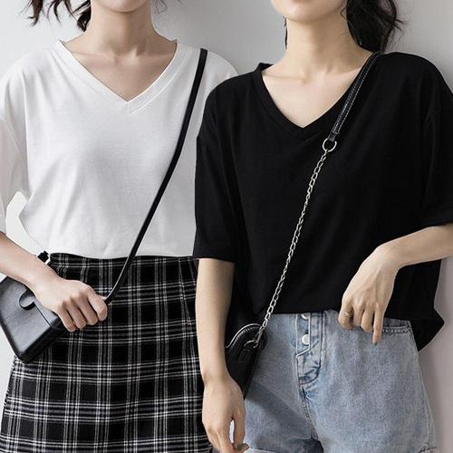 무지 세트 여름 반팔 티 여성 셔츠 기본 2P 브이넥 WFLPIHI