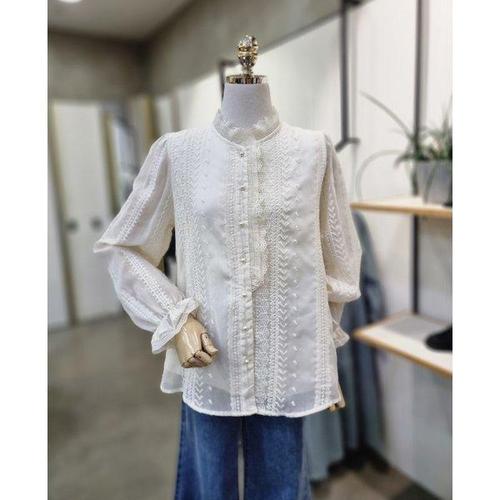[머스트비]단추 넥레이스 블라우스 (택가격: 49000원)