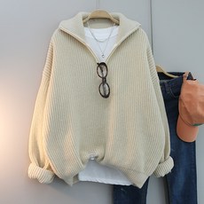 여성용 빅사이즈 오버핏 데일리룩 긴팔 니트 하이넥 루즈핏 체형커버 스타일리쉬