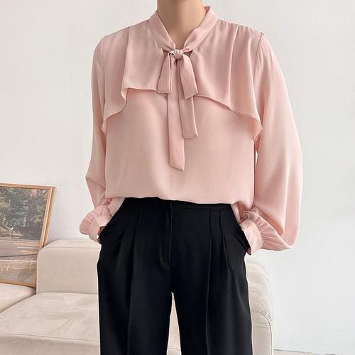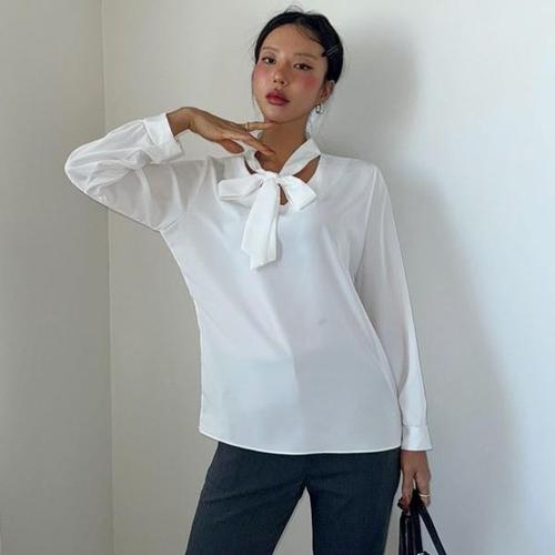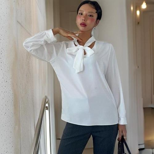 [신상오픈런]여성 오피스 스타일 넥타이 블라우스 차르르 핏 카라 디자인
