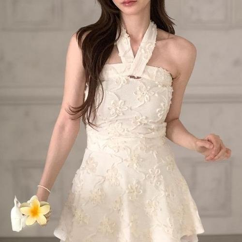 [옷자락] 여성 리본 넥타이 더블레이드 쉬폰 랩 미니 스커트