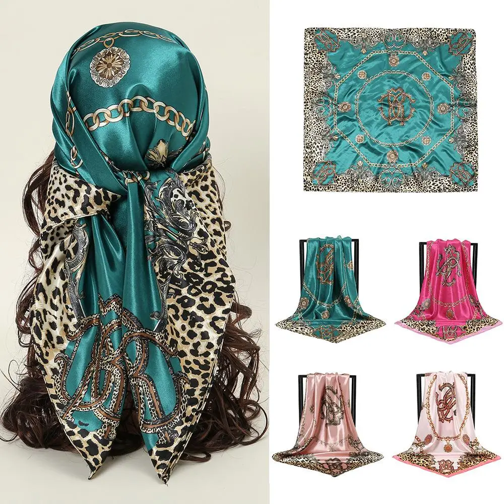 레오파드 프린트 스카프 실크 시뮬레이션 다목적 장식 체인 링크 다용도 패셔너블 가을 포켓 스퀘어