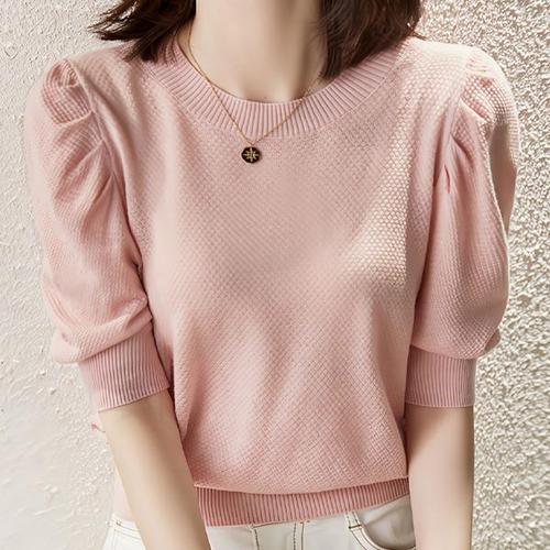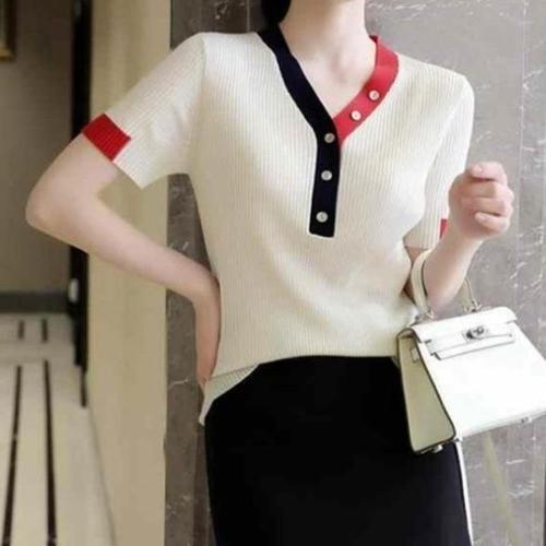 [다잇템][다잇템] 여자 아이스 SS 시원한 콘트라스트 슬림핏 넥 반소매 니트_16847848_588872