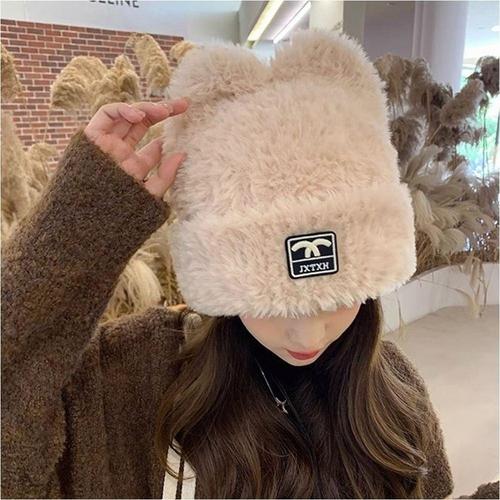 TEMU 여성용 겨울 모자 - 플러시 보온 두꺼운 비니, 부드러운 귀덮개 & 넓은 둘레, 날씨 및 야외 활동용, 크리스마스/추수감사절에 적합 - 손세탁 가능한 텍스타일 소재