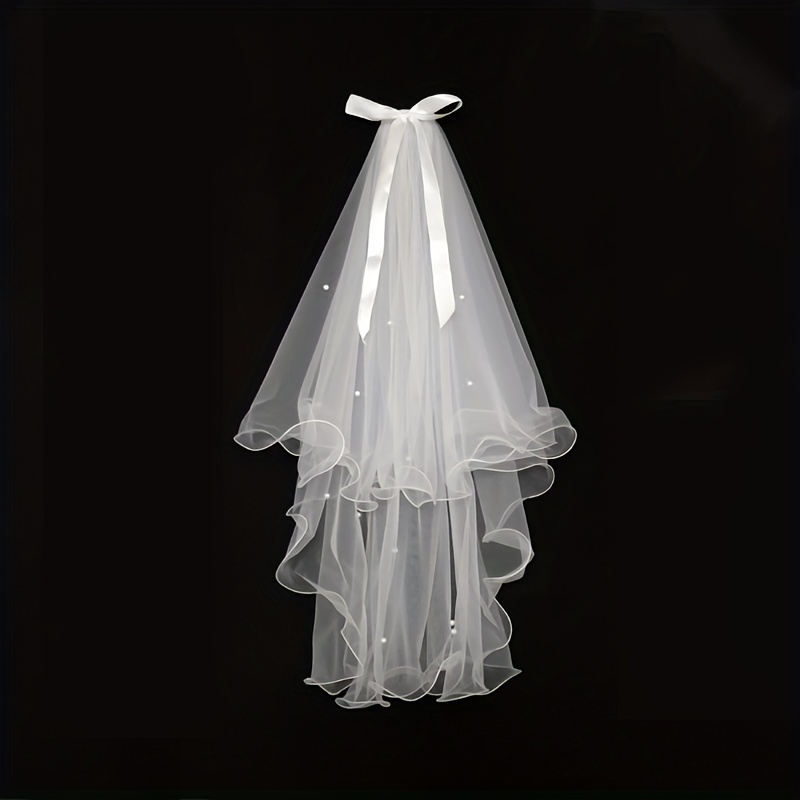 TEMU 비즈 장식 헤밍 보우 베일, 프렌치 웨딩 컨페션 파티용 숲 스타일 소형 베일 더블 레이어